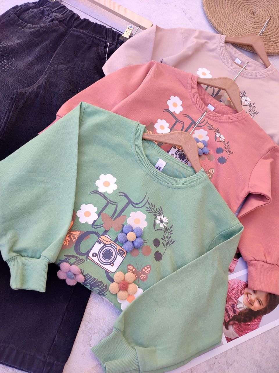 بلوز تک دخترانه گل برجسته سایز ۴۰ تا ۶۵