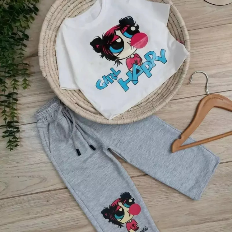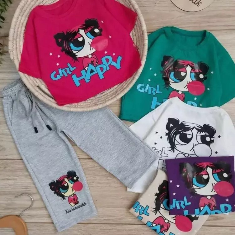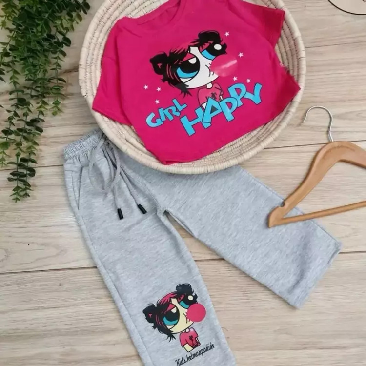 ست دخترانه کراپ و شلوار دختر آدامسی سایز 45 و 50