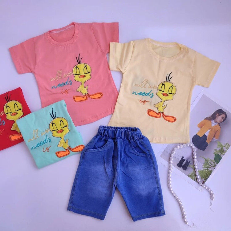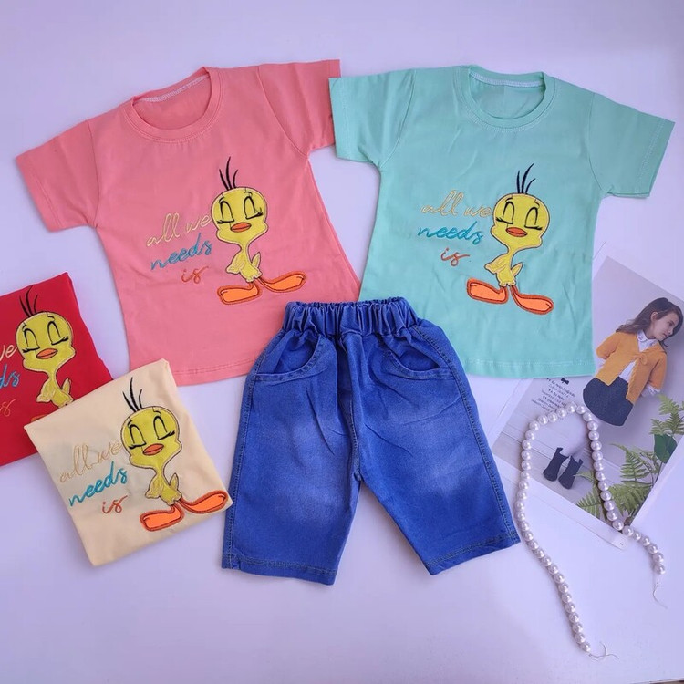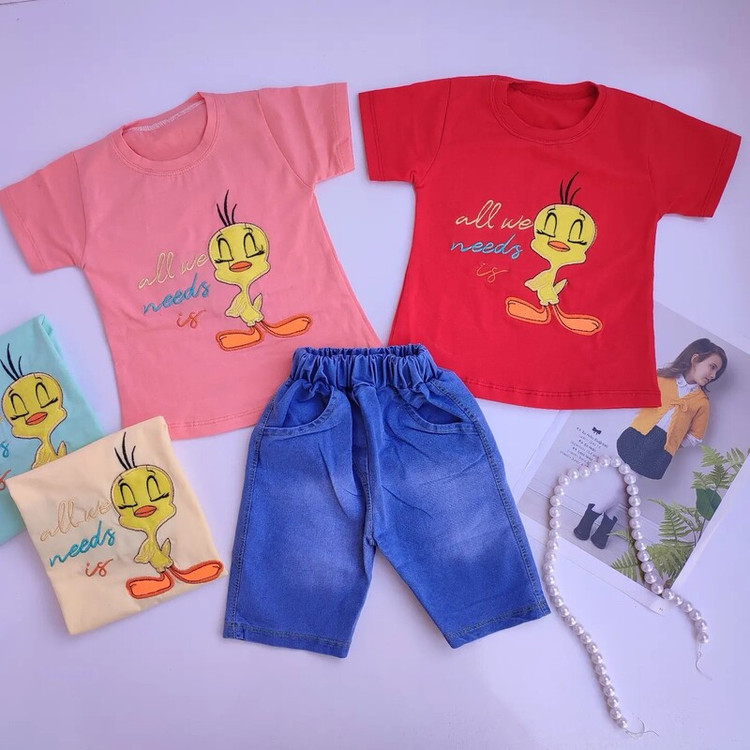 ست تیشرت و شلوارک دخترانه طرح توییتی 😍