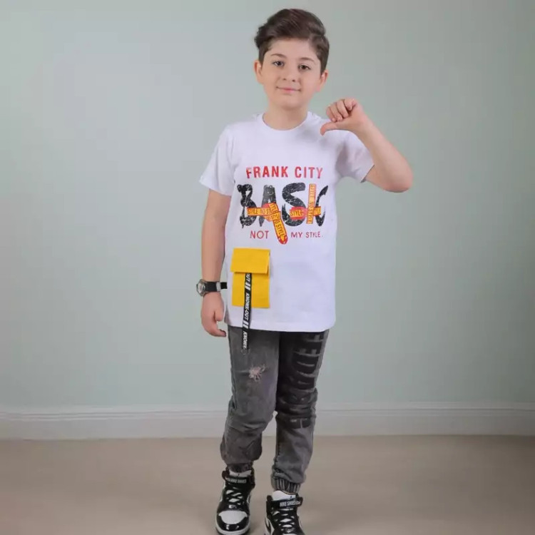 تیشرت تک پسرانه طرح basic مناسب 8 تا 12 سال